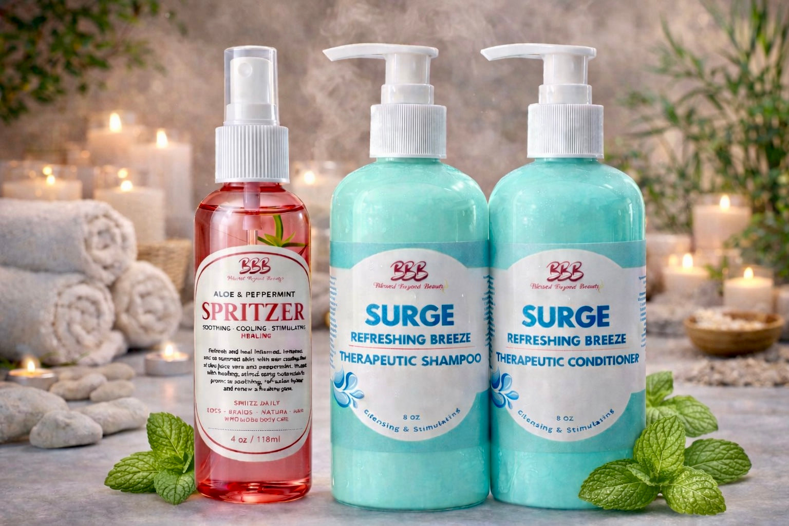 1. Therapeutic Shampoo: Our specialized shampoo formulated to cleanse and treat the scalp, addressing issues like dandruff, irritation, or buildup.